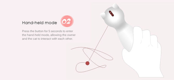 SPECIAL DESIGN: Cat shaped pointer for unique appearance and style. Keep furry friends busy and provide healthy exercise by playing. Cat-teasing mode can be divided into two modes: automatic mode and manual mode.